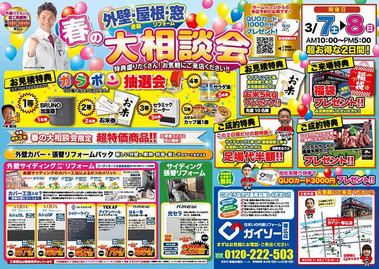 3/7(土)・3/8(日)春の外壁&屋根&窓リフォーム大相談会開催!