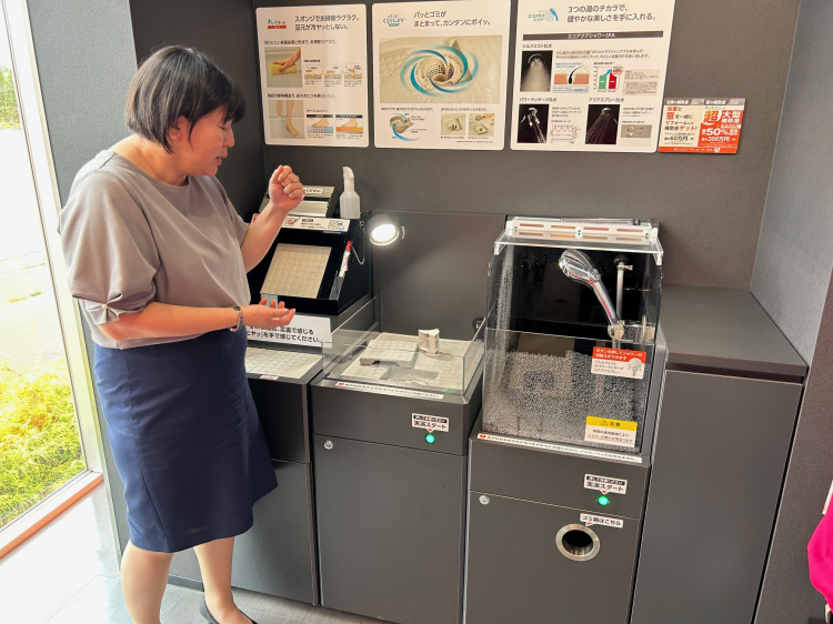 勉強会の後はショールーム内を案内してもらい水回りの商品や玄関サッシの見学をしました。