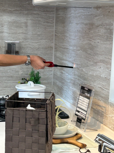 こちらは実際にホーロー材の壁に火をつけてできたススを掃除する写真です。