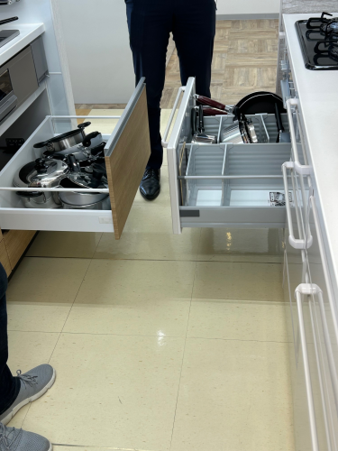 ホーロー材はキッチン引き出しの中にも使われているのでマグネット式の間仕切りを使用すれば左のごちゃごちゃした収納から右の整頓された収納に、綺麗に片付けられます!